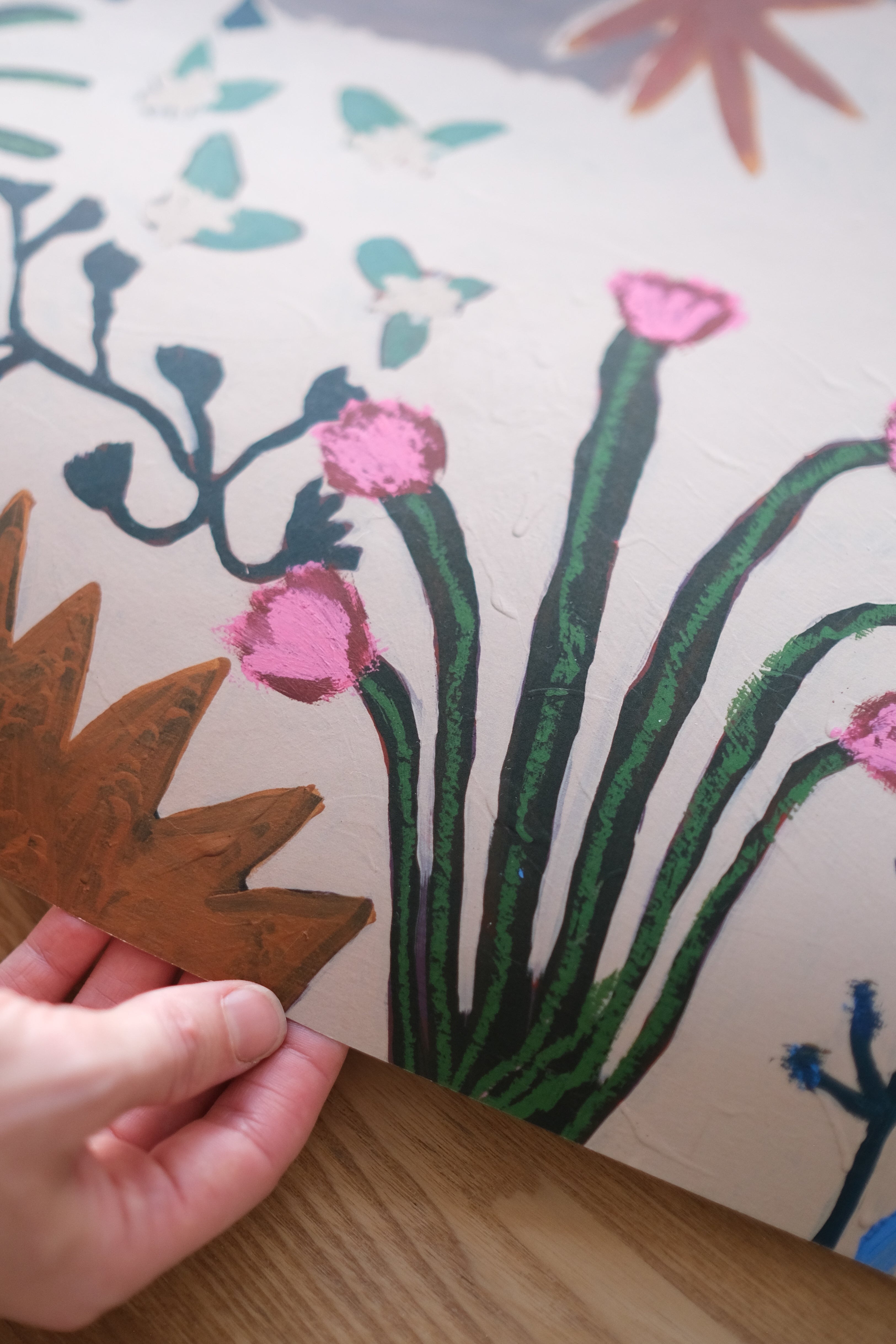 Wie bei Papierdrucken empfehlen wir naturbelassenes oder gebeiztes Holz. Natürliche Eiche, Walnuss oder schwarzes Japanholz harmonieren alle wunderbar mit unseren Farbpaletten.